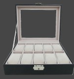 PU leather watch display case with exquisite workmanship. Includes 10 grids and 10 soft little pillows for displaying watches or other jewelry. Lined in with soft faux suede material to protect your watches and jewelry better. Designed with a clear transparent top lid for easy viewing and protecting them from dust and dirt at the same time. Compact and elegant appearance.